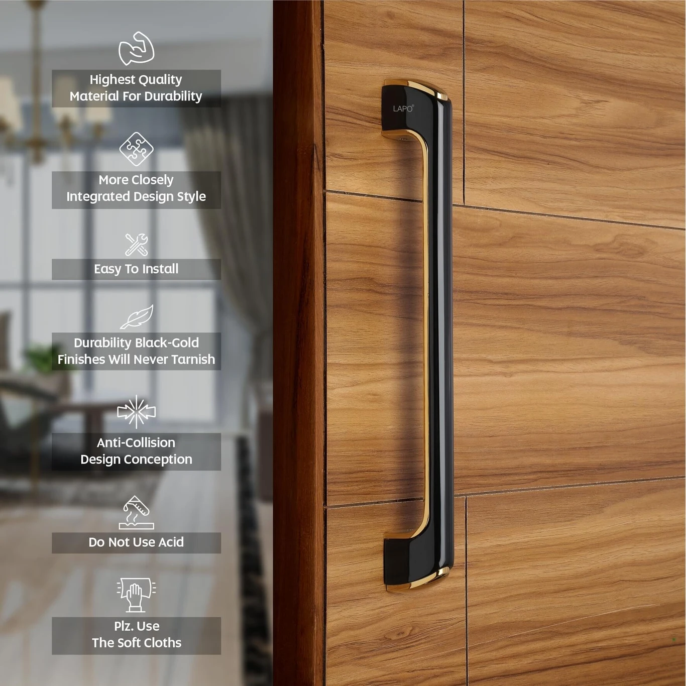 Elevate the aesthetic of any modern entryway or interior space with the L'Reson Premium Dual-Tone Architectural Door Pull. Designed for both high-end residential and commercial applications, this handle perfectly balances form and function. The sleek, elongated silhouette offers a comfortable, ergonomic grip, while the striking contrast of materials makes it a standout architectural feature on both light and dark wood surfaces.